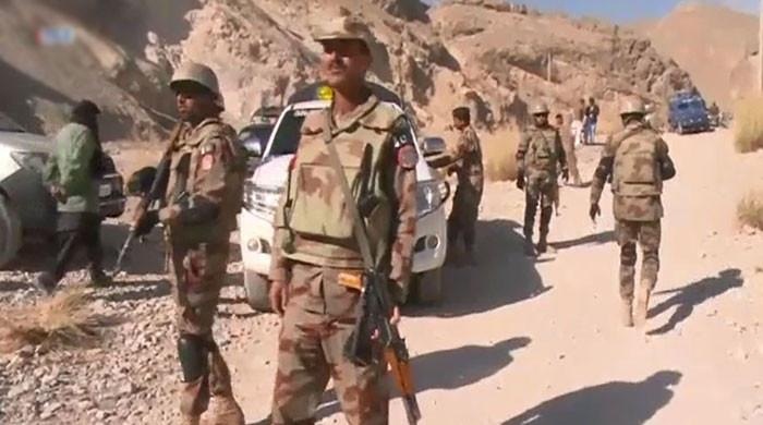 دوسری جانب پنجگور میں فورسز پر حملے میں چار دہشت گرد مارے گئے جبکہ 3 فوجی شہید اور 4 زخمی ہوئے۔ سیکیورٹی فورسز نے چار سے پانچ دہشت گردوں کو گھیرے میں لے رکھا ہے۔ دہشت گردوں کے رابطے بھارت اور افغانستان سے ملتے ہیں۔